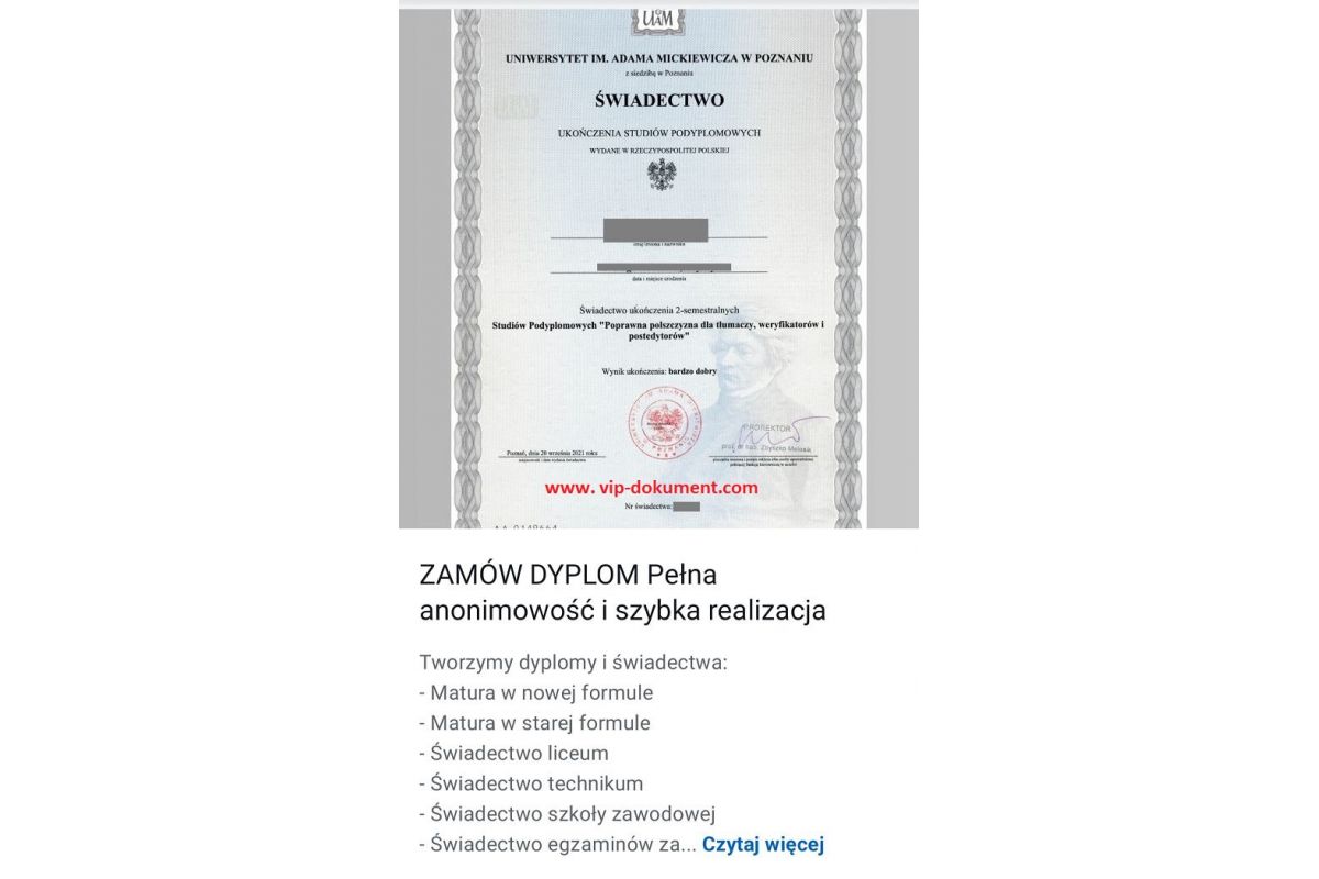 Kupię świadectwo maturalne, dyplom uczelni
