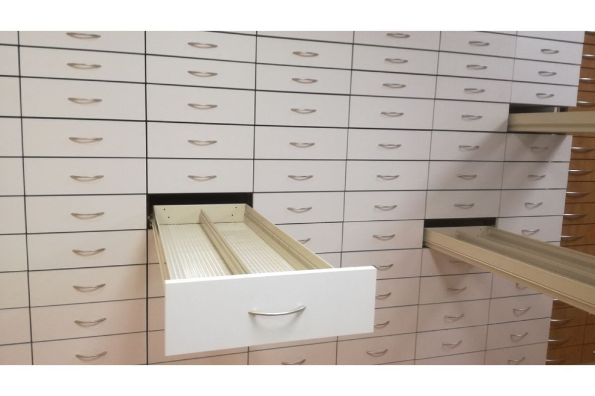 W pionie jest około 15-17 szuflad na łożyskach, szuflada wyposażona jest w przegrody i boczne opisy. Szuflady wystąpuja w głbokościach 0d 100-120cm oraz szerokości od 39, 5 do 42, 5cm.